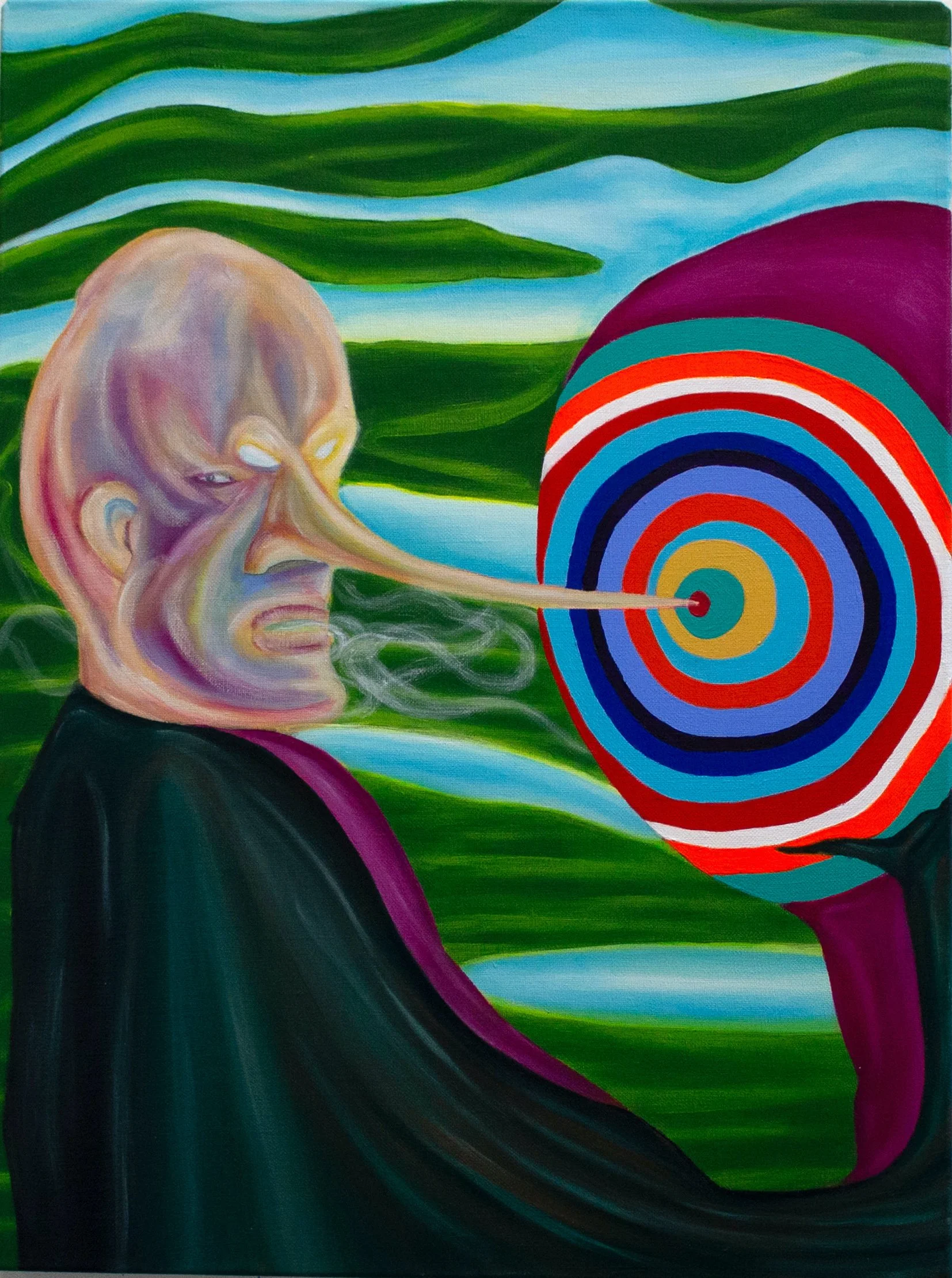 Fart Into a Flame, 2024. Acrylic on canvas — 56.5 x 46 cm