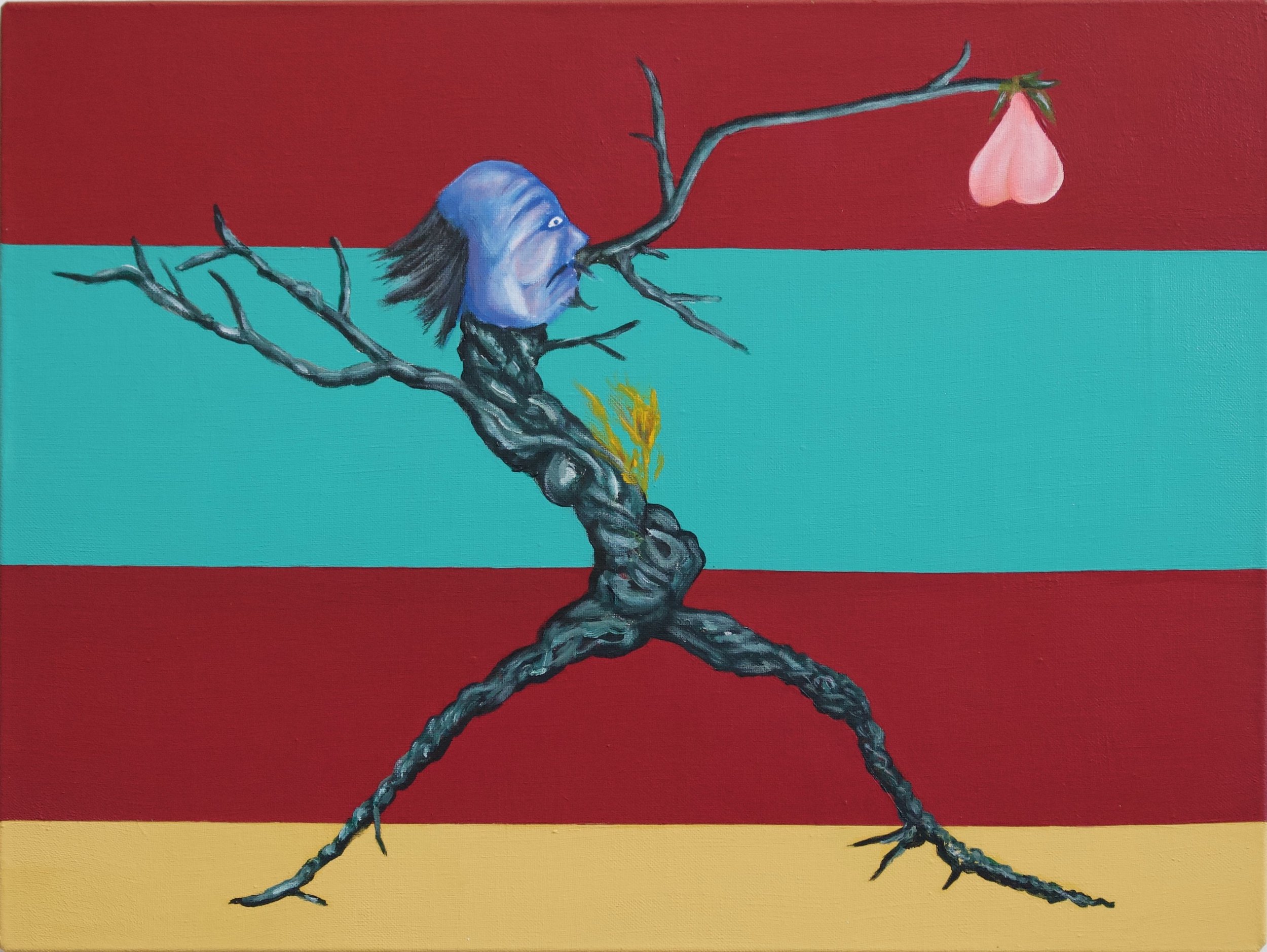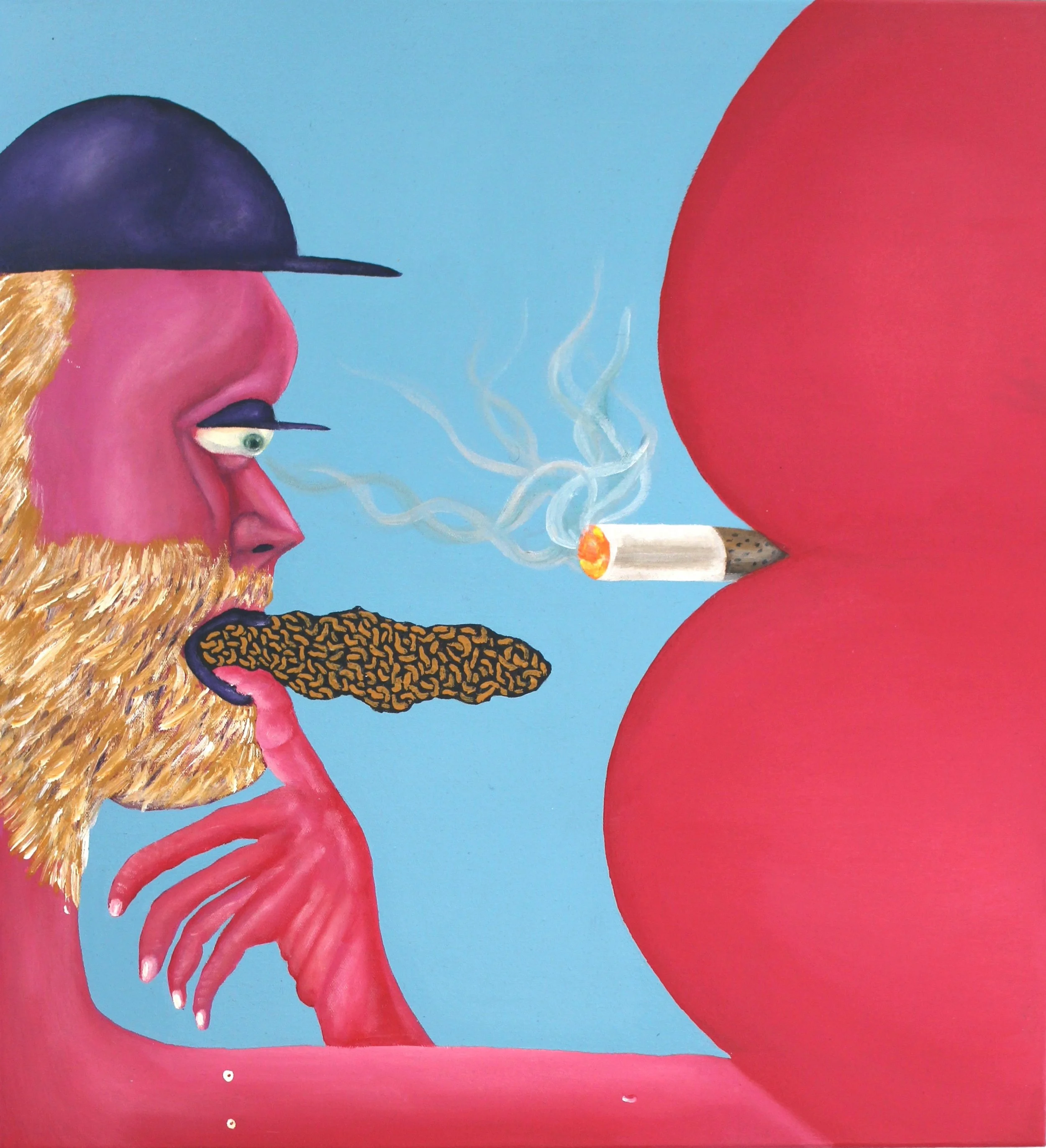 Man Holding His Own Faecal Matter, 2024. Acrylic on canvas — 31 x 41 cm
