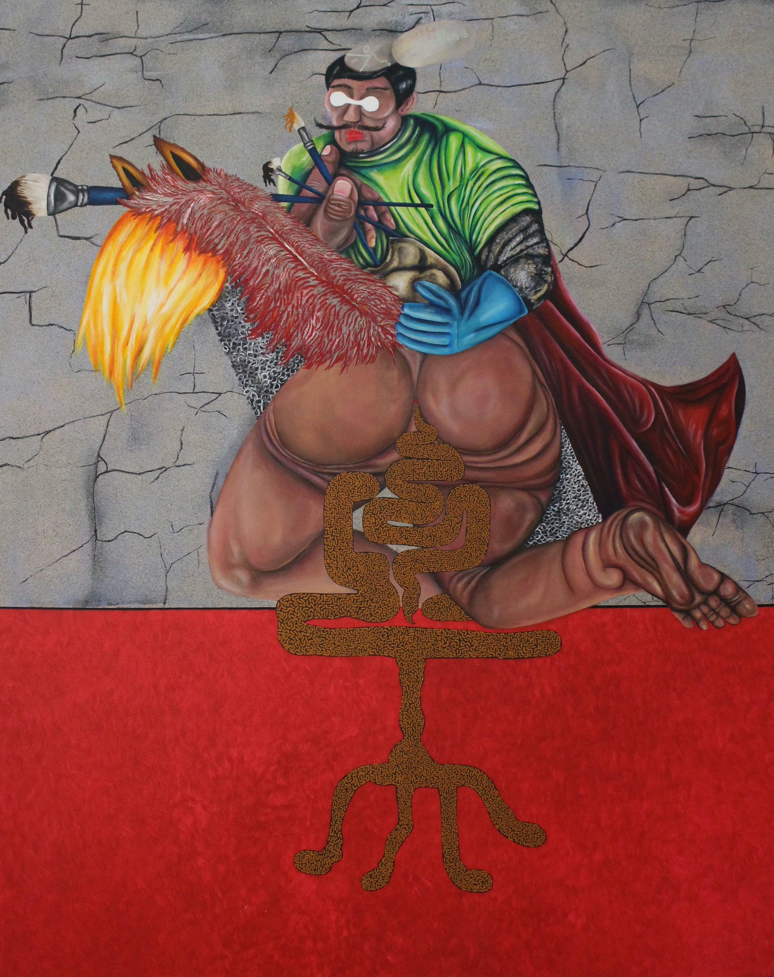 Don Quixote and His Stool, 2023. Acrylic on canvas — 140 x 160 cm